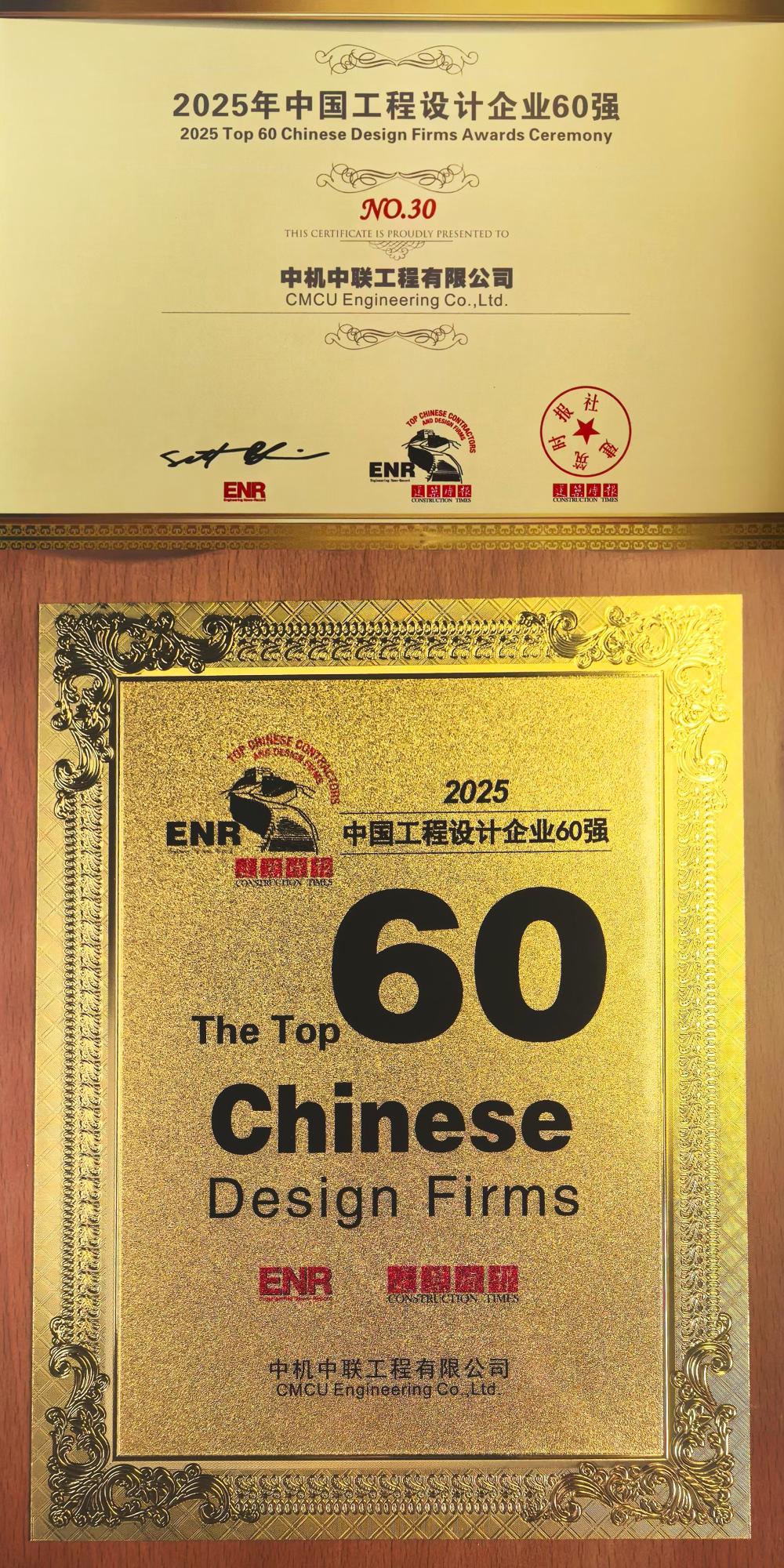 9月26日,美国《工程新闻记录》(ENR)杂志与中国《建筑时报》两家权威媒体共同发布了2025年度“中国承包商80强和工程设计企业60强”榜单。中机中联工程有限公司在2025ENR/建筑时报“中国工程设计企业60强”中位列第30名。