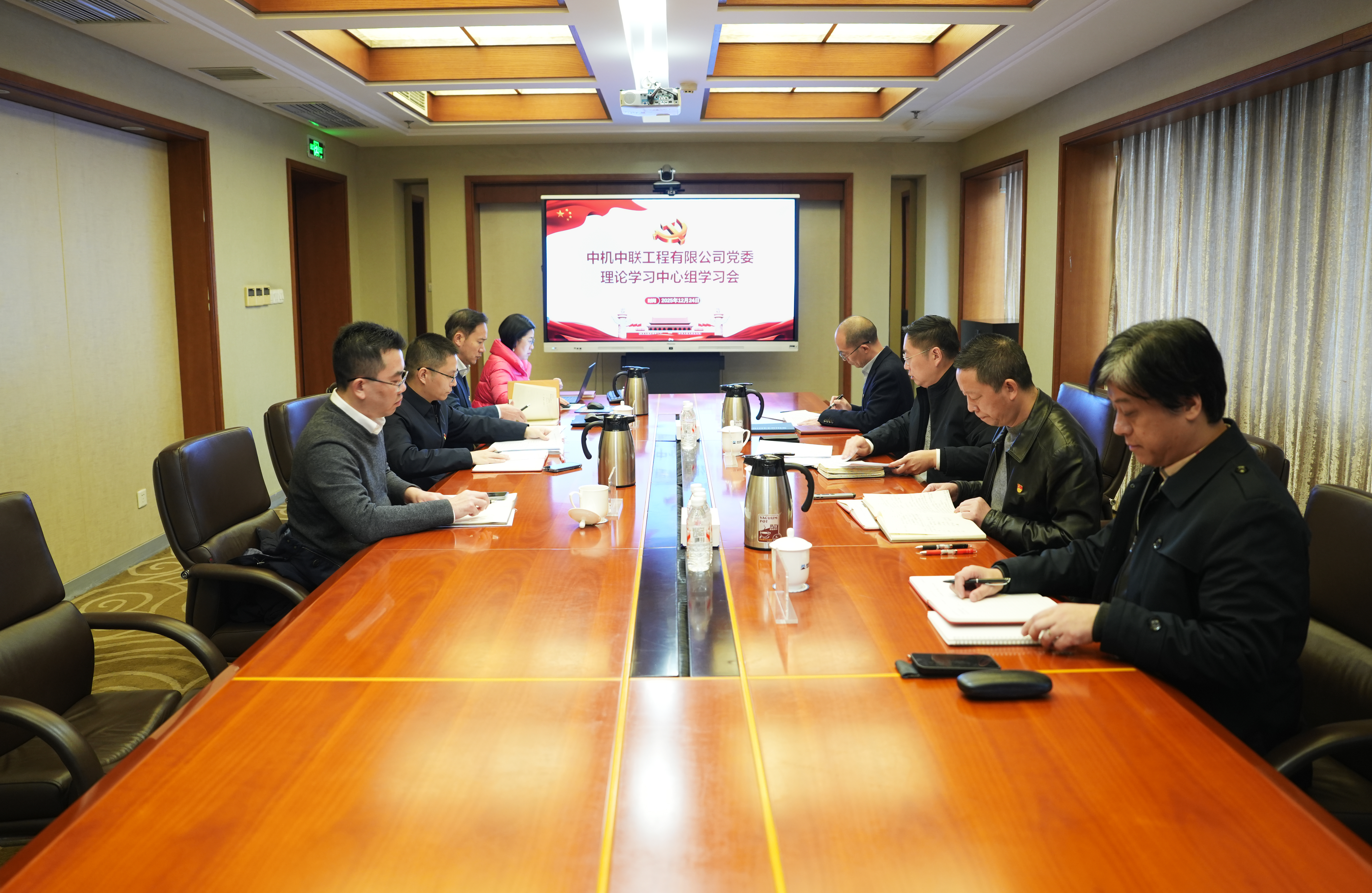 12月24日,中机中联党委召开2025年第九次理论学习中心组会议,专题学习中央经济工作会议精神。公司党委书记、董事长赵永勃主持会议并作总结讲话,公司党委副书记、总经理袁瑞龙领学会议精神,公司党委委员、财务总监陈海涛作重点发言,其他中心组成员作交流研讨发言。