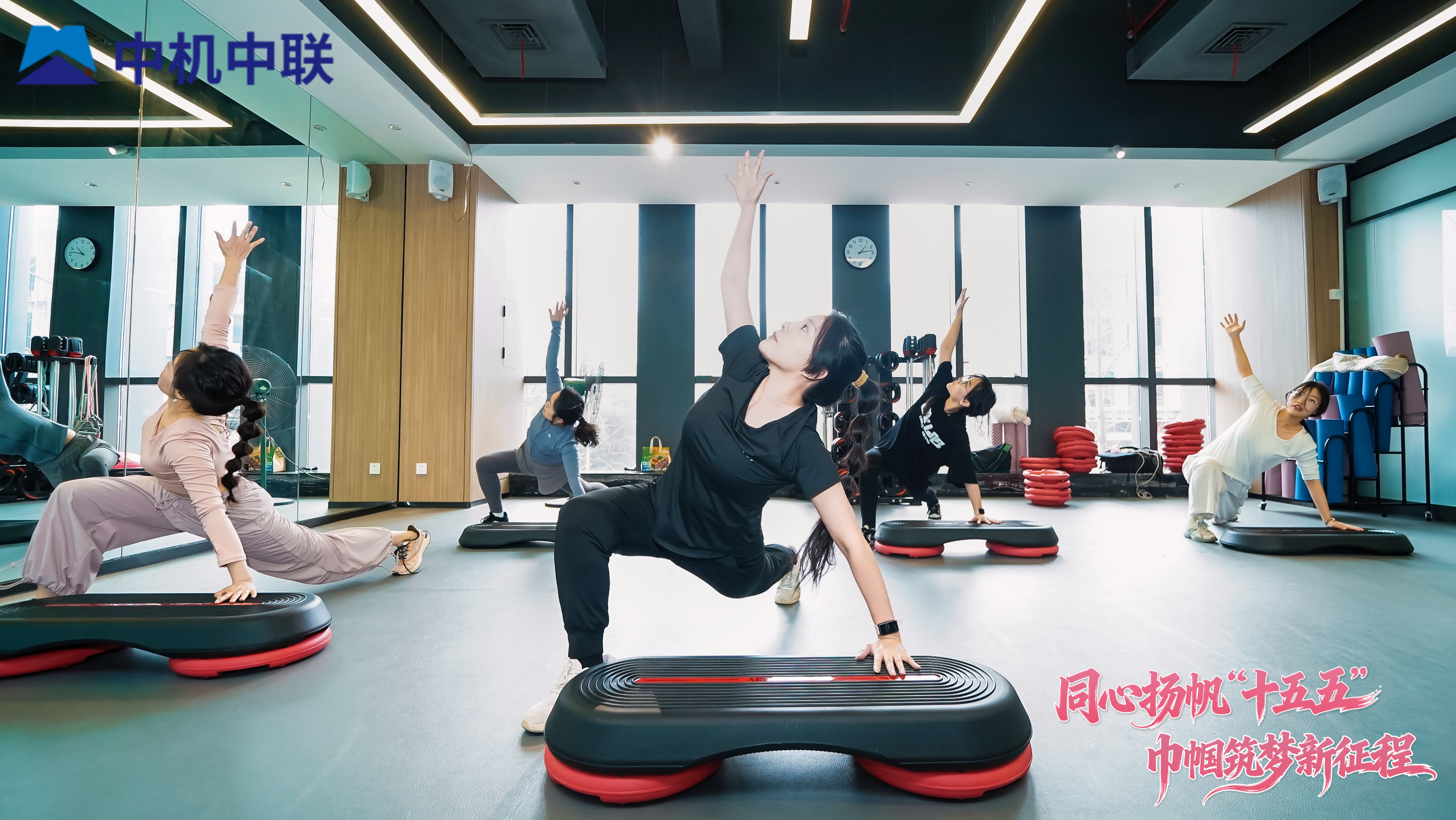 在专业教练的带领下,女职工们依次体验了“动物流”与“踏板训练”两场精品团课。在“动物流”课程中,女职工们模仿动物姿态,在流畅的起伏与旋转中舒展身体,释放压力,感受与自然律动的和谐共鸣。随后的“踏板训练”则节奏明快,大家踏着音乐的节拍上下舞动,汗水与笑容交织,展现出中机中联女职工特有的韧劲与朝气。